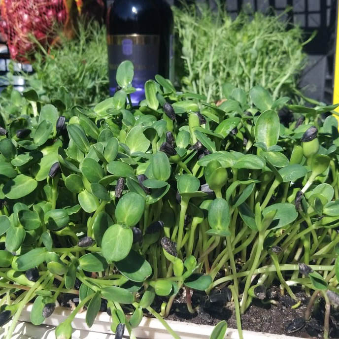 En 2024, realizamos experimentos interesantes con microvegetales. Usamos tres tipos de sustrato diferentes: esterillas de coco (un sustrato especial), sustrato sin sustrato y una capa de 0,5 cm de tierra fértil. Como resultado, incluso para los brotes que se alimentan de la energía almacenada en la semilla, la tierra fértil natural da un color más intenso a los brotes de girasol y guisantes. La tierra no estaba estéril, y no se recomienda su venta. Pero para brotes destinados a animales, por favor.