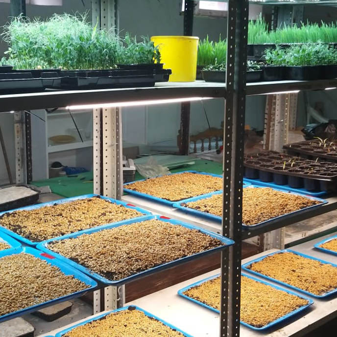 Una idea adicional es producir alfombras verdes de grano germinado como forraje para ganado en eco-granjas, lo que aumenta el valor nutricional y el contenido de vitaminas en los brotes.