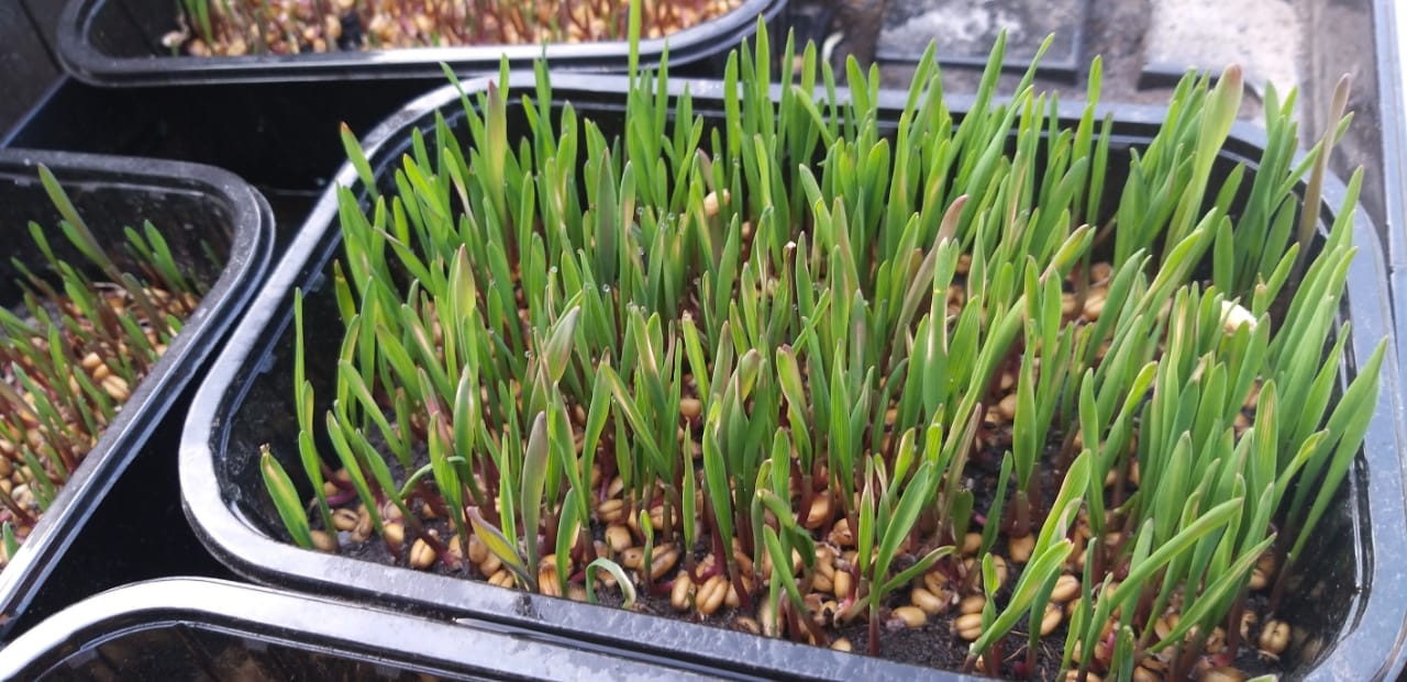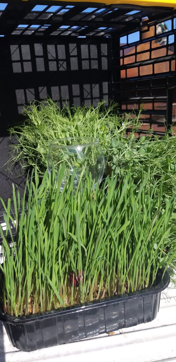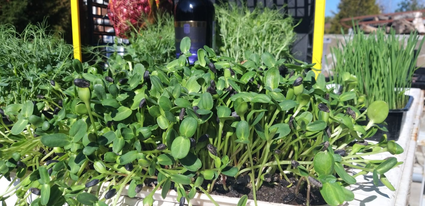 Интересные эксперименты с микрозеленью мы провели в 2024 г. Мы применили три разных типа субстрата. Кокосовые маты — смециальный субстрат, вообще без субстрата и слой плодородной почвы в 0.5 см. Как результат, даже для проростков, которые питаются готовой запасенной в семени энергией, оказалось, что природная плодородная земля дает более насыщенный цвет проростков подсолнечника и гороха. Земля была не стерильна, и для продажи такое не порекомендуешь. А вот для ростки для животных — пожалуйста.